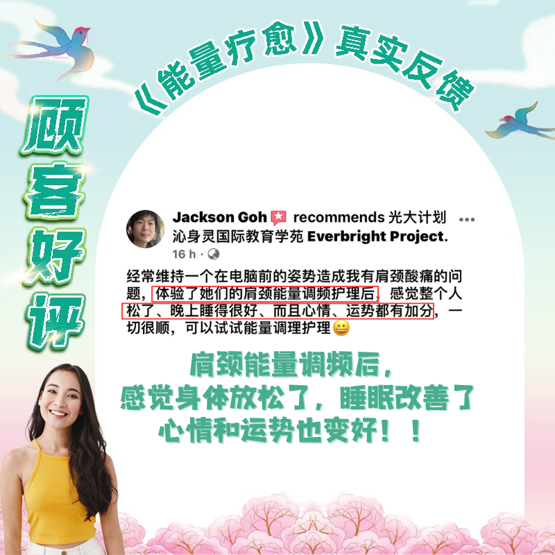 After energy adjustment in the shoulders and neck, I felt more relaxed, my sleep improved, and both my mood and fortune also got better.